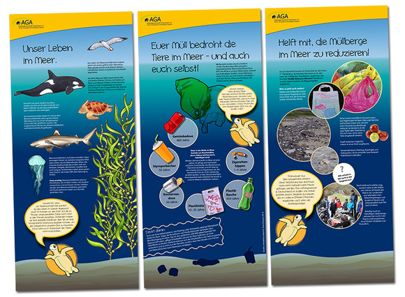10 Banner-Displays umfassende Meeresschildkröten-Ausstellung mit Umweltbildungsbegleitprogramm. Das Schildkröten-Maskottchen Agathe führt die Besucher durch die Ausstellung. Die Ausstellung ist in diversen Sprachen vorhanden und wird weltweit eingesetzt.